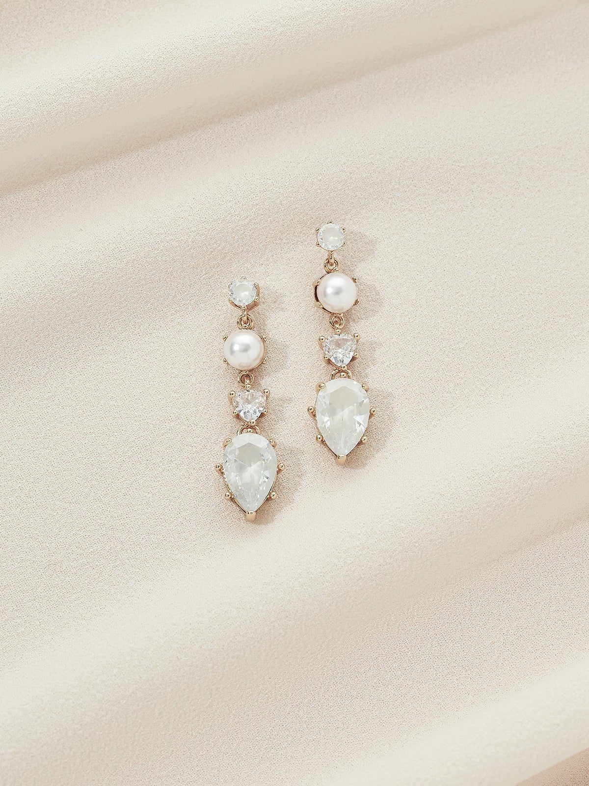 The Augustine Drops are for the modern style icon. Warm white gems and a single pearl give these earrings a vintage flare, while their contemporary silhouette is fresh and sleek.