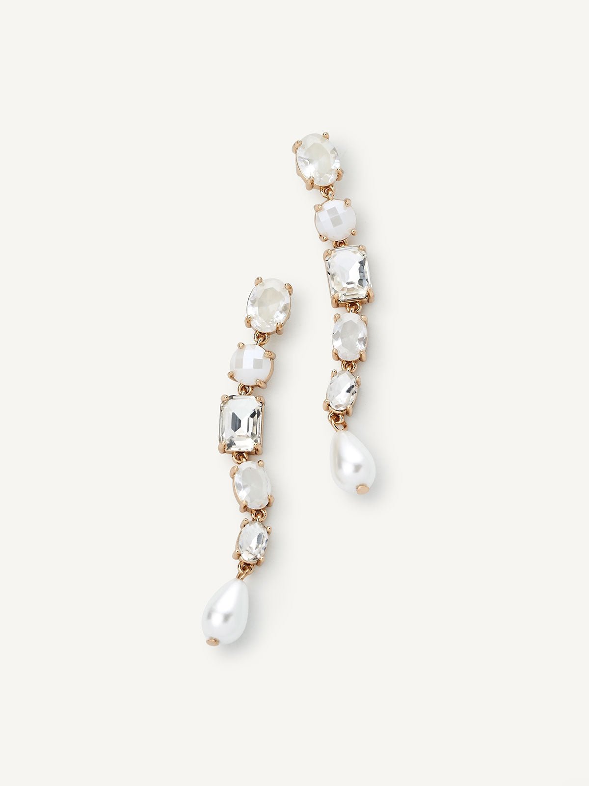 Artistically crafted with contrasting gems, the Larissa Drops will be your new go-to drops. Designed with clear, opalescent, and pearly white hues, this sleek and always-in-style earrings give the perfect touch of luxe.