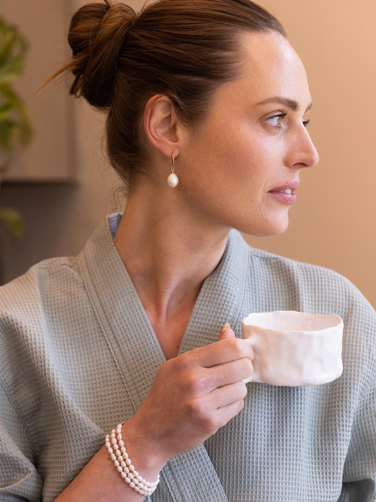 These simple and classic pearl drops are easy to style whichever way you like. Crafted with natural freshwaterpearls - no two are alike!